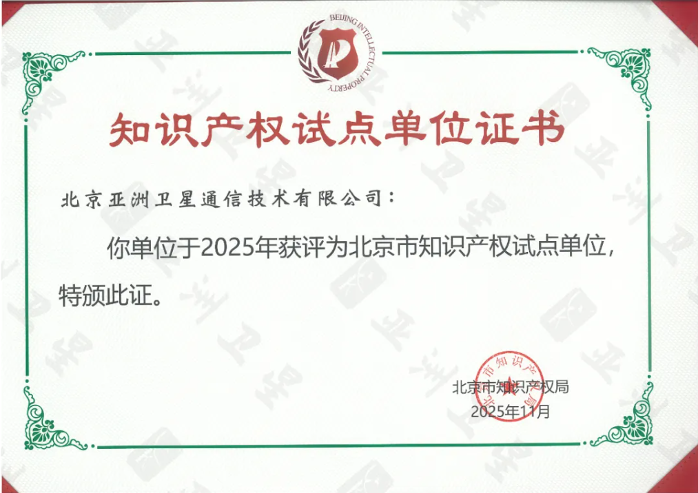 冬雪凝瑞气,佳绩绽芳华。经过北京市知识产权局的严格审核与择优认定,北京亚洲卫星通信技术有限公司成功获评“北京市知识产权试点单位”。这一荣誉的获得,不仅是对公司在信息化、数字化服务领域创新实力与知识产权管理水平的官方认可,更是对我们持续深耕技术研发、强化知识产权保护工作的莫大激励!